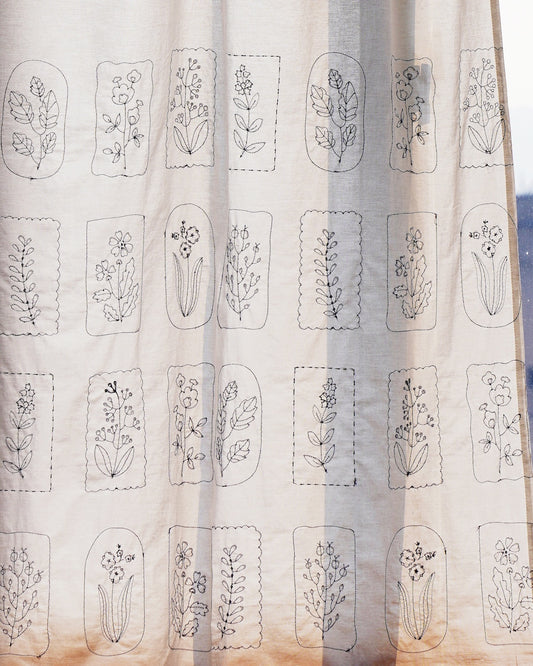 Botanical Embroidered Tie-Top Privacy Curtain – Blue on White (1 Panel)