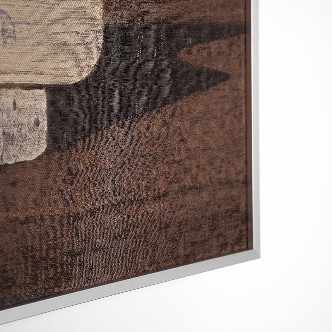 We frame the fabric in the same way as an oil painting, as glass weakens the details and texture of the fabric, we do not provide barrier glass.
