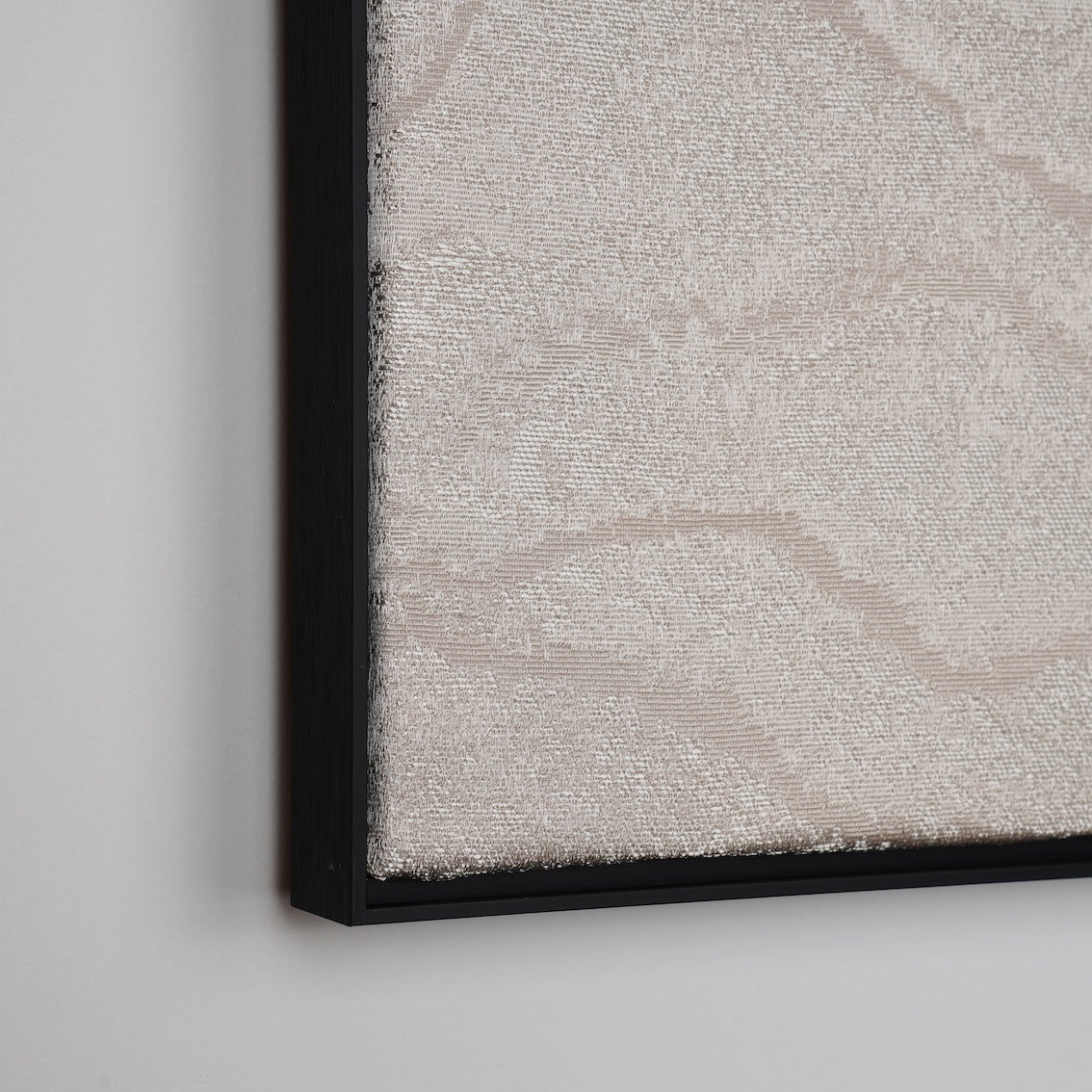 We frame the fabric in the same way as an oil painting, as glass weakens the details and texture of the fabric, we do not provide barrier glass.