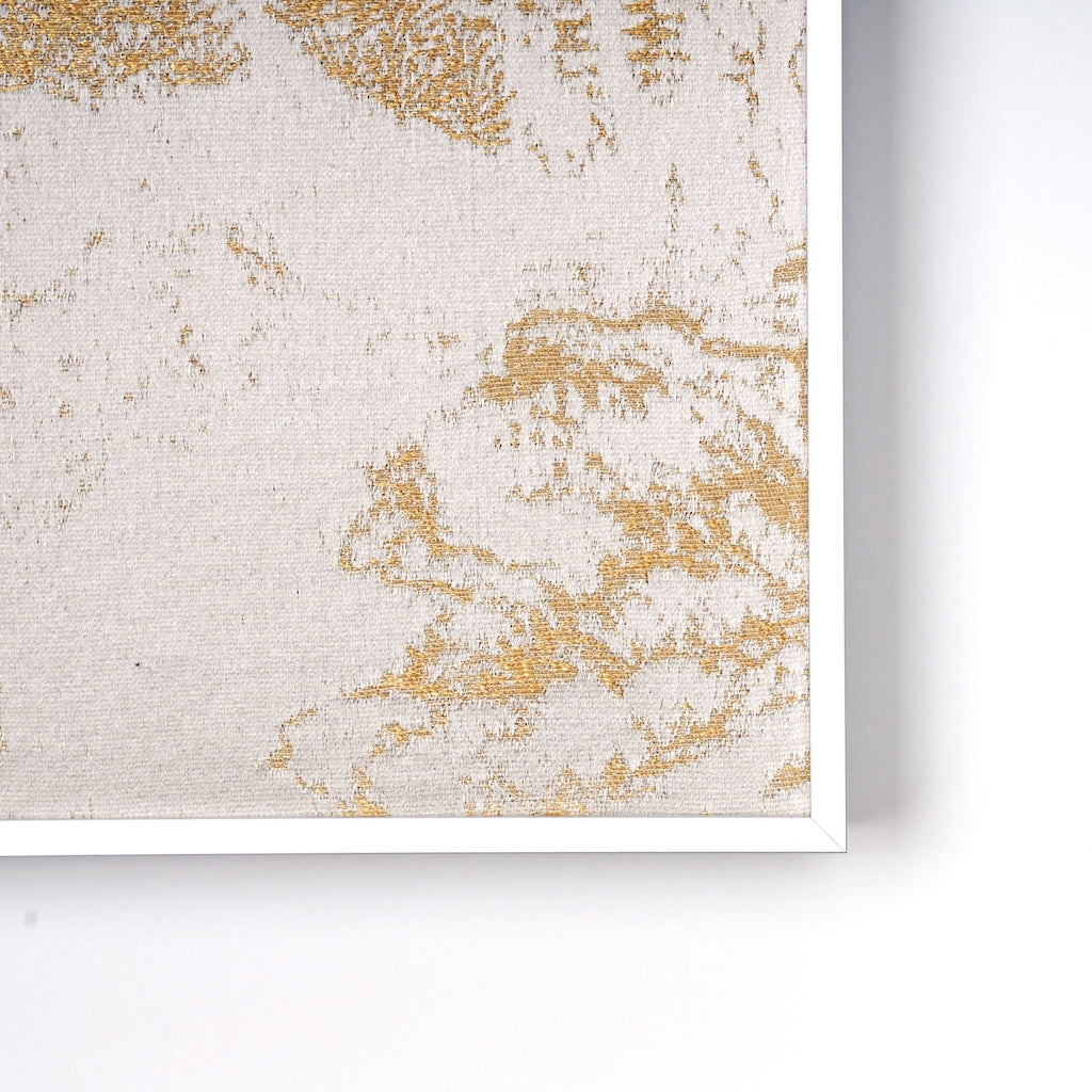 We frame the fabric in the same way as an oil painting, as glass weakens the details and texture of the fabric, we do not provide barrier glass.