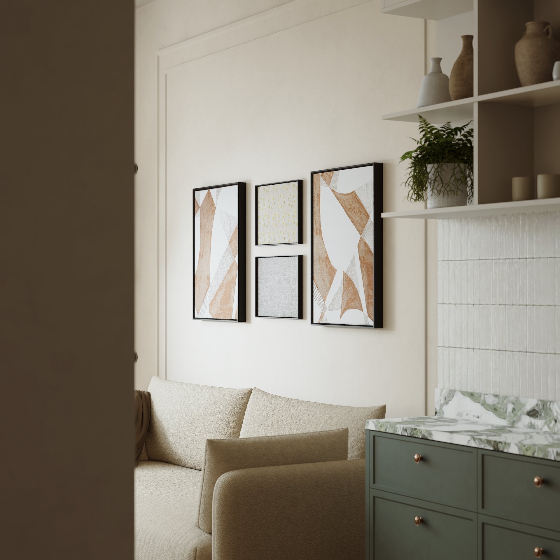 Each textile panel presents a unique geometric arrangement while maintaining the same color story, allowing you to create a curated gallery wall or display them separately as accent pieces. The dynamic patterns and contemporary aesthetic make this set perfect for energizing living rooms, offices, or entryways with a touch of artistic sophistication.