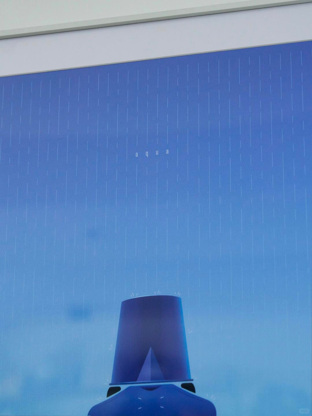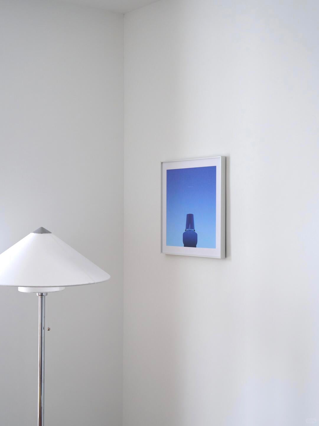This minimalist blue-toned print draws inspiration from a quietly profound moment in Ryuichi Sakamoto's final film, Coda—where the master, beneath a plastic bucket in the rain, teaches us how to listen.