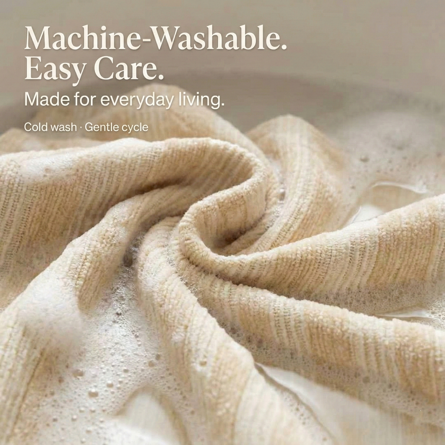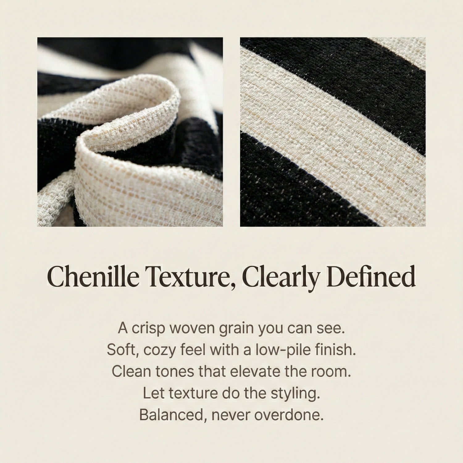 A woven beige stripe that reads soft and architectural—never flat, never loud.