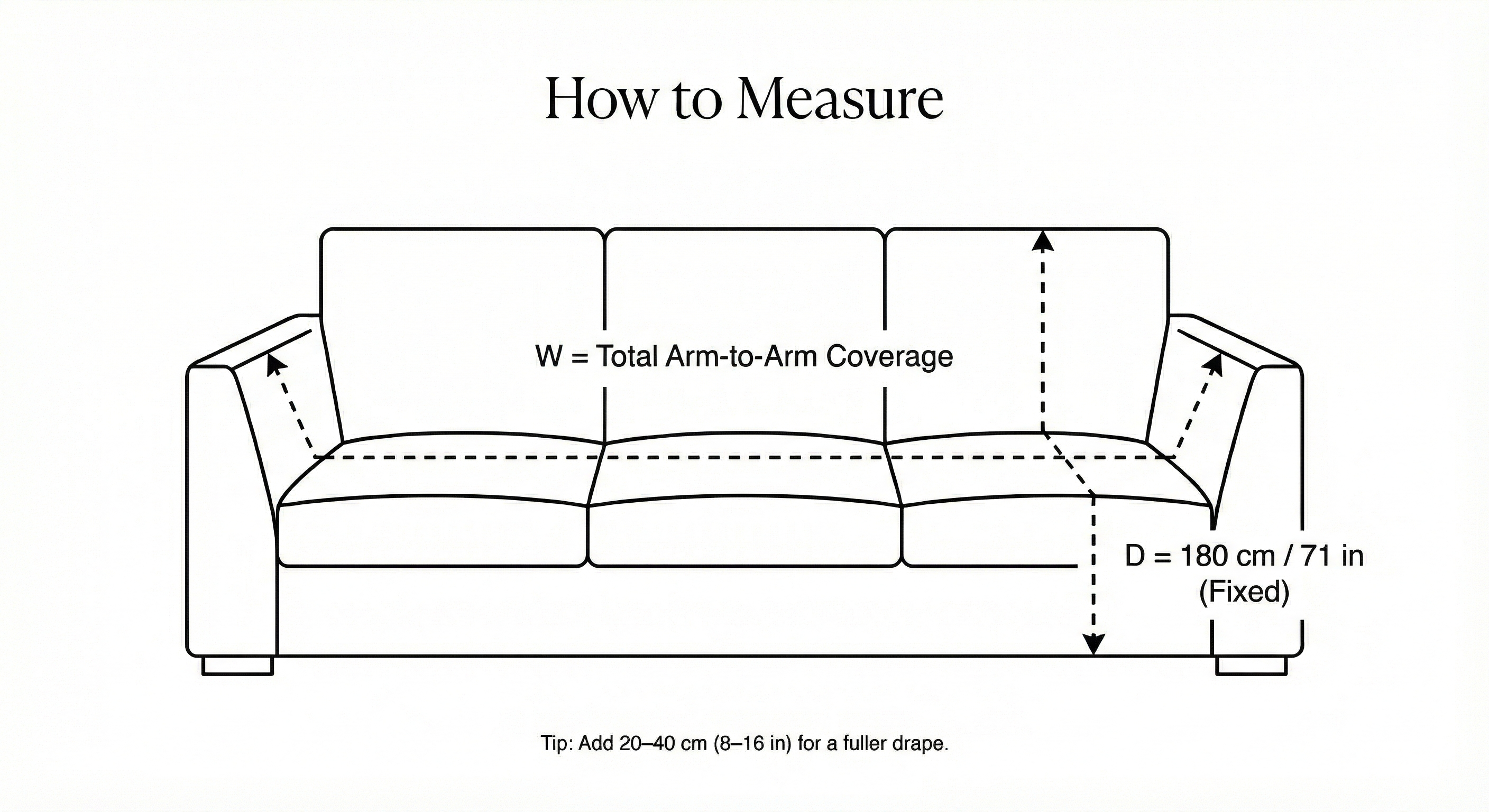 - Neat Fit: choose a size closer to your sofa for a cleaner, more tailored drape.