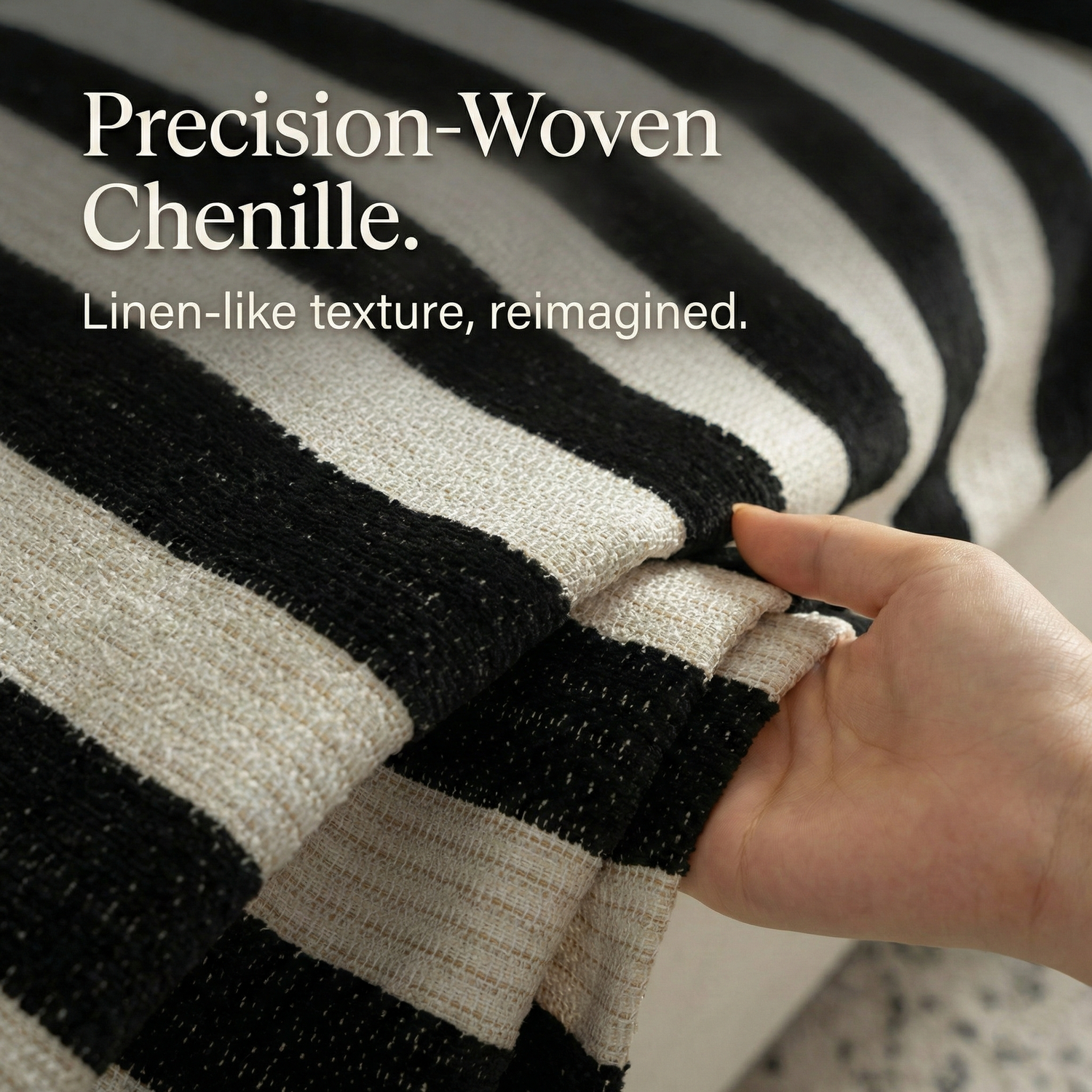 We love chenille, woven textures, and tactile surfaces that look good up close.
