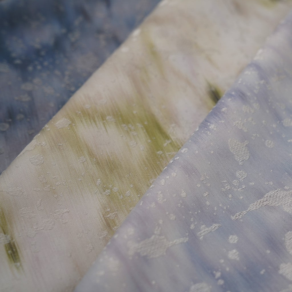 Experience textile innovation with our Splash collection jacquard fabric, where artistry meets technical mastery. This premium material features a unique double-layer construction, beginning with a softly blurred, print-like base achieved through precise yarn-dyeing techniques. Rising from this atmospheric foundation are dramatically raised patterns that mimic both embroidered dimension and the organic flow of pigments on canvas—all woven as one continuous textile.