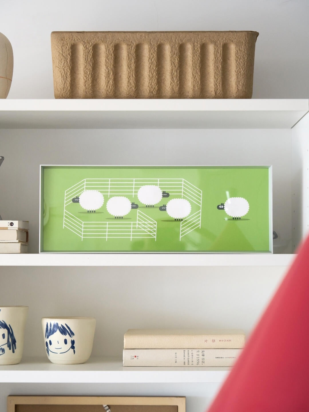With its soft green palette, simple linework, and quietly playful composition, The Little Wanderer adds a calm focal point without overwhelming the room. It works especially well above shelves, in reading corners, entryways, bedrooms, or anywhere that benefits from a softer visual rhythm.